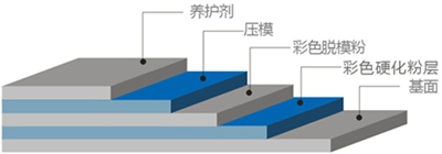 3.混凝土初凝前,以镘刀将混凝土镘平,以撒布法将彩色印花料按规定用量平均分二至三次均匀撒布于混凝4.土面层,每次均匀以专用镘刀进行镘平、镘光工作。